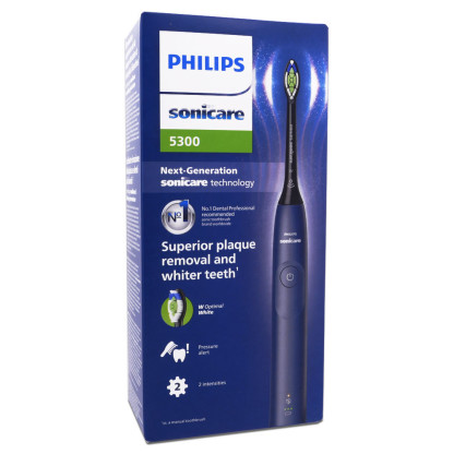 Avec son design élégant en bleu nuit et sa technologie de pointe, la PHILIPS SONICARE 5300 est un allié du quotidien pour prendre soin de votre hygiène bucco-dentaire simplement et efficacement.