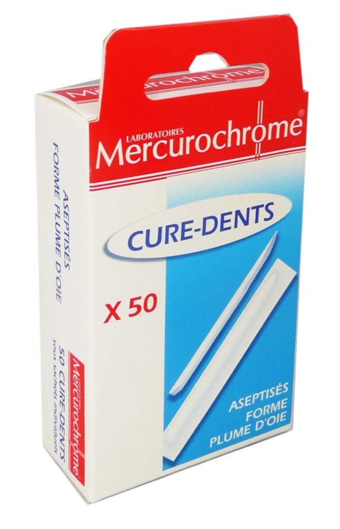 Depuis 1917 Mercurochrome est la marque fidèle aux familles, devenue l’alliée de tous les genoux écorchés avec la création de la fameuse petite bouteille rouge. Aujourd’hui, la vocation de Mercurochrome reste identique : proposer des produits de premiers soins de qualité et accessibles, pour offrir une solution efficace à tous les petits bobos du quotidien. Les cures dents de MERCUROCHROME sont spécialement conçus pour faciliter l’élimination des résidus alimentaires dans les espaces interdentaires les plus étroits, difficilement accessibles avec une brosse. Ils assurent en complément du brossage, une hygiène bucco-dentaire parfaite, en toute sécurité.