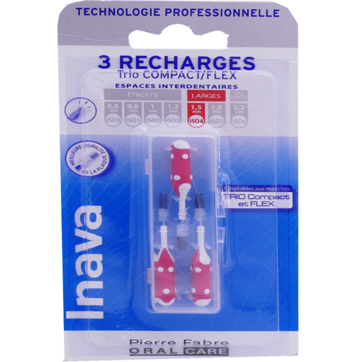 Les recharges de brossettes interdentaires conçues par la marque Inava ont été spécialement élaborées pour procurer une hygiène bucco dentaire irréprochable à prix discount. Ces accessoires s’adaptent parfaitement aux manches trio compact et Inava flex. Leur principal rôle est d’éliminer efficacement la plaque dentaire et de retirer les résidus alimentaires coincés entre vos dents.