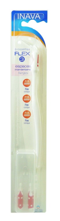 INAVA est une marque engagée depuis de nombreuses années auprès des professionnels de la santé et de l’hygiène bucco-dentaire. INAVA développe des accessoires de brossage de très haute technicité : brosses à dents (hygiène quotidienne, brosses spécifiques, enfants), brossettes interdentaires, fil dentaire… La gamme des brossettes interdentaires offre la qualité et la technologie INAVA en complément du brossage pour faciliter l’hygiène des zones difficiles d’accès. Les brossettes interdentaires INAVA FLEX sont spécialement conçues pour éliminer efficacement la plaque dentaire entre les dents. Le manche spécifique FLEX offre 2 orientations possibles pour un accès facilité dans toutes les zones buccales. 5 modèles au choix pour espaces étroits ou larges.