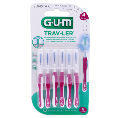 Les brossettes interdentaires GUM Travler, des soins professionnels pour des gencives en bonne santé une réduction optimale de la plaque dentaire. Taille 1,4 mm.