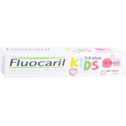 Le Gel dentifrice Kids FLUOCARIL est spécialement formulé pour favoriser l’apprentissage du brossage de dents chez les tout-petits de 3 à 6 ans. Kids FLUOCARIL est riche en calcium et composé de 97% d’ingrédients d’origine naturelle pour assurer une protection efficace contre les caries. Très doux, il respecte les gencives fragiles et l’émail des dents de lait des enfants. Son goût à la fraise plaira aux plus petits pendant le brossage !
