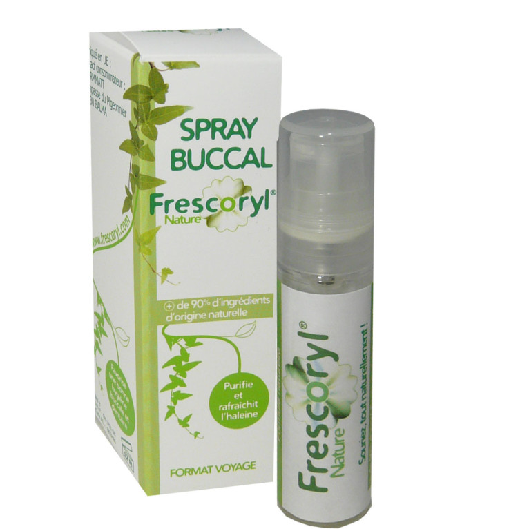 FRESCORYL est une marque du laboratoire PharmMatt destiné à l’hygiène bucco-dentaire et corporelle pratique et en format nomade pour un brossage des dents innovant sans utiliser d’eau ni de brosse à dents. Le Spray Buccal FRESCORYL Nature à base d’huile essentielle de thym et d’extrait de fleur d’hamamélis, permet de lutter contre les attaques acides sur l’émail des dents ainsi que de la multiplication des bactéries, et d’apaiser les inconforts, pour une hygiène buccale parfaite. Ce spray à l’essence de menthe poivrée pour une haleine intensément fraîche, pratique par son petit format, s’emporte partout avec soi pour une utilisation à tout moment de la journée. Sans paraben ni conservateur