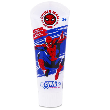 MR WHITE DENTIFRICE SPIDERMAN 3ANS+ 75ML est en vente en ligne sur le site de votre parapharmacie à prix discount, conçu pour l'hygiène bucco-dentaire des enfants à partir de 3 ans.