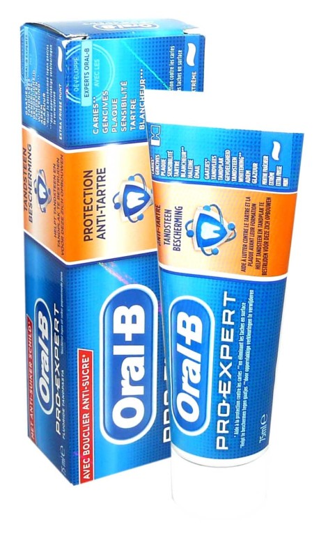 Le dentifrice Pro expert Anti tartre d'ORAL B, le soin d'hygiène dentaire pour des dents propres sans plaque dentaire ni tartre.