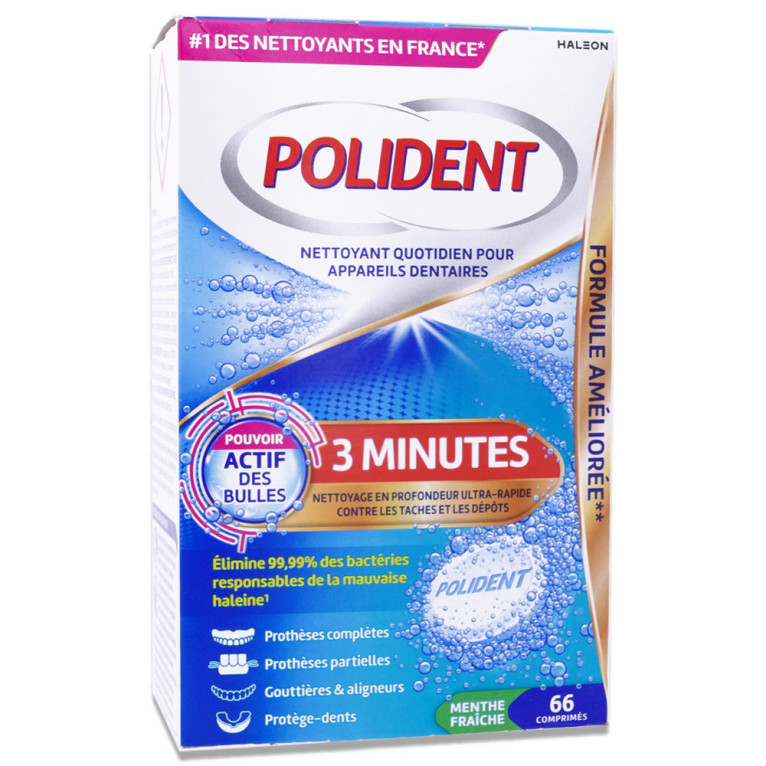 POLIDENT 3 MINUTES NETTOYANT APPAREILS DENTAIRES 66 COMPRIMES