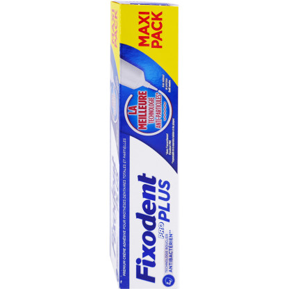 Fixodent Pro Plus Anti-particules de FIXODENT dans votre parapharmacie en ligne à prix discount, la meilleure crème adhésive pour fixer les prothèses totales et partielles tout en prenant soin des gencives.