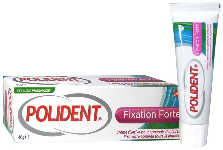 La gamme POLIDENT du laboratoire GSK (GlaxoSmithKline ou Santé Grand Public) est composée de produits d’hygiène bucco-dentaire pour un confort buccal et dentaire au quotidien conçus spécialement pour les prothèses partielles. La crème fixative Fixation forte fixe instantanément dans toutes les directions et pendant 12 heures l’appareil sans avoir de mouvements.