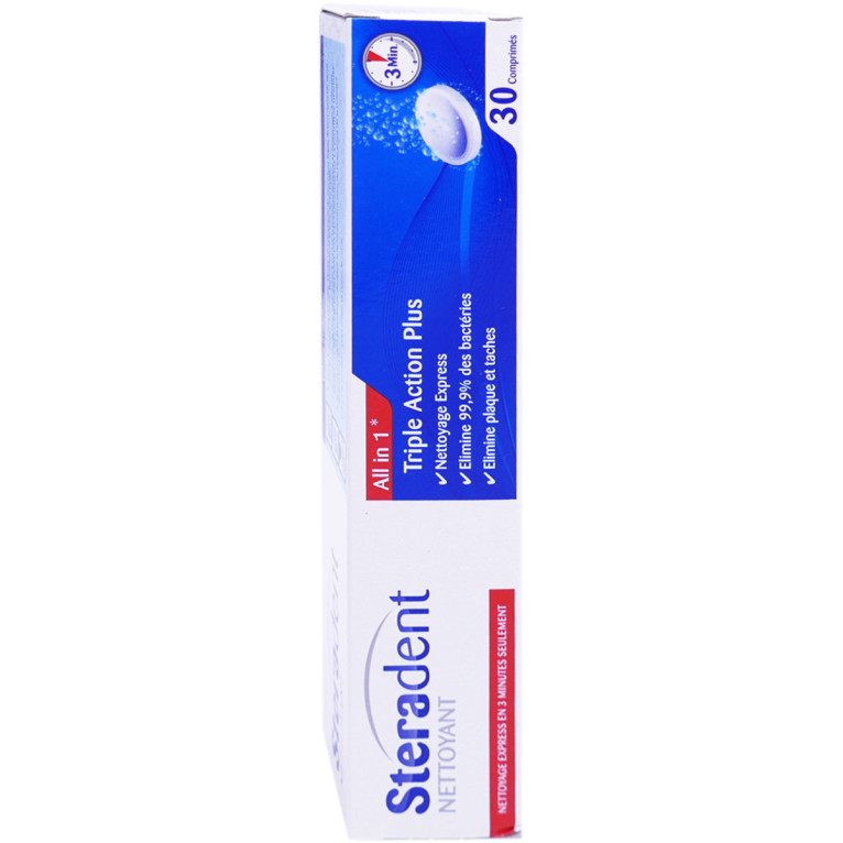 STERADENT NETTOYANT TRIPLE ACTION PLUS 30 COMPRIMES