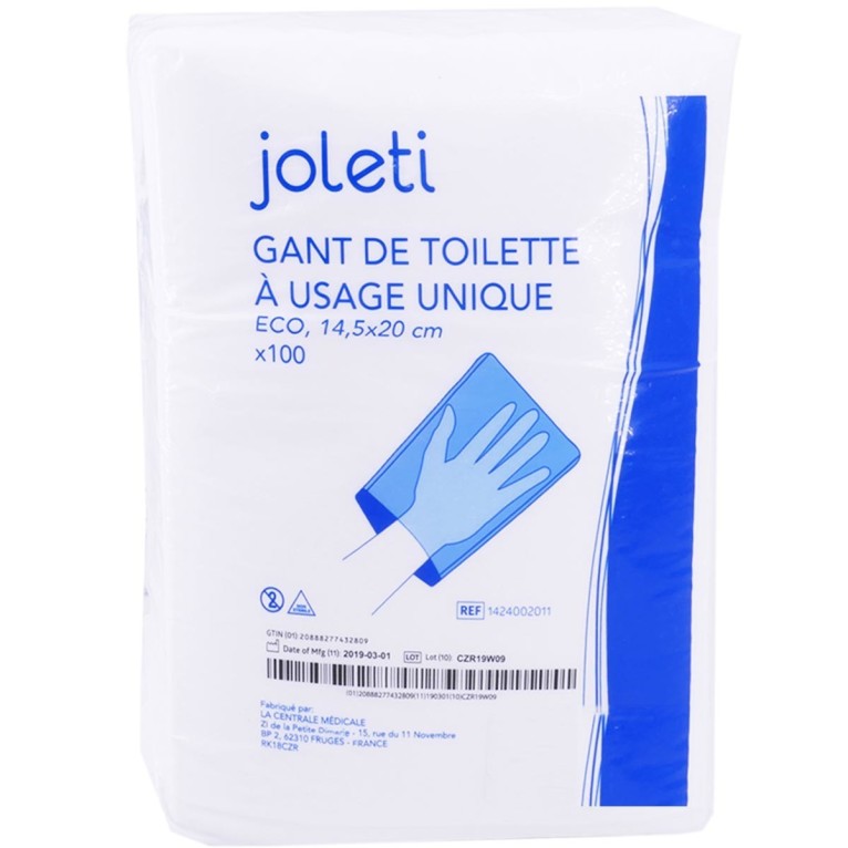 JOLETI GANT DE TOILETTE USAGE UNIQUE 14.5X20CM X100 - 10MAX/CDE