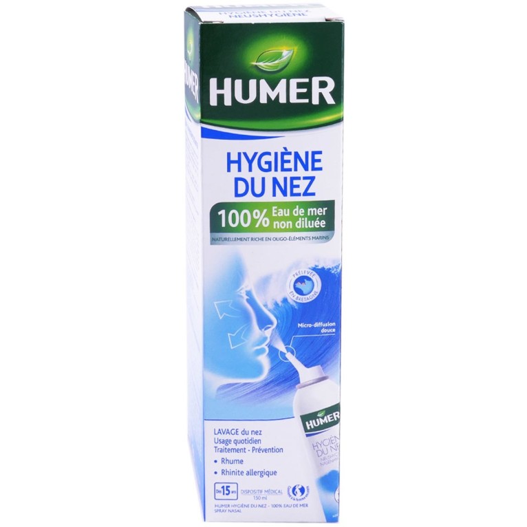 HYGIÈNE DU NEZ discount d’HUMER, le soin d’hygiène 100% eau de mer non diluée naturellement riche en oligo-éléments marins dans votre parapharmacie en ligne à prix discount.