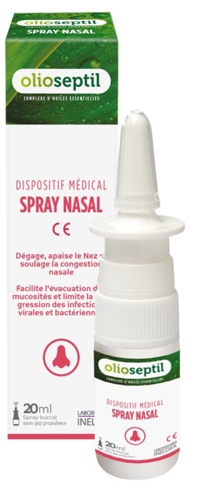 La marque OLIOSEPTIL du laboratoire Ineldéa est composée de produits pour soigner les petits maux du quotidien (digestion, confort urinaire, rhumes,…) et de désodorisants à base d’huiles essentielles 100% pures et naturelles. Les huiles essentielles OLIOSEPTIL, sont 100% pures et naturelles et chémotypées rigoureusement sélectionnées pour leur aromatogramme et conçus selon des technologies très performantes pour préserver la qualité des huiles essentielles et agir de façon optimale sur l’organisme. OLIOSEPTIL SPRAY NASAL est un dispositif médical qui va assainir le nez pour désencombrer et décongestionner les narines, apaiser les irritations, faciliter l’évacuation des mucosités, et protéger les fosses nasales des bactéries, grâce à sa solution légèrement hypertonique à base de sel de la Mer Morte, à l’eau distillée d’eucalyptus, à l’extrait de propolis ainsi qu’aux huiles essentielles de menthe et de thym. Rapidement le confort respiratoire revient, le nez est assaini.
