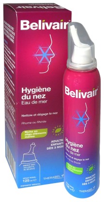 Hygiène du nez Eau de mer BELIVAIR à prix discount, un dispositif médical sous forme de spray dans votre parapharmacie en ligne discount, pour l’hygiène quotidienne du nez, et libérer les voies respiratoires nasales lors de rhumes, ou de rhinites, chez toute la famille à partir de 3 mois.