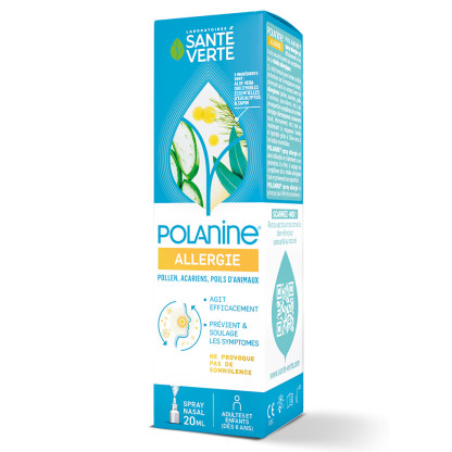 POLANINE Spray Nasal Allergie est un assemblage délicat de plusieurs huiles essentielles (eucalyptus, sapin) et d’aloe vera, particulièrement recommandé pour les personnes sujettes aux allergies. Sa formule aide à lutter contre les agents allergènes tels que le pollen, la poussière, les poils d’animaux… en formant sur la muqueuse nasale une couche protectrice pour prévenir du contact avec les allergènes. Utilisé avant tout risque d’allergie ou dès les premiers symptômes, le spray permettra d’éviter la survenue de ‘hinite allergique et soulagera les symptômes (éternuements, démangeaisons, écoulement nasal, etc.). Sans effet de somnolence.