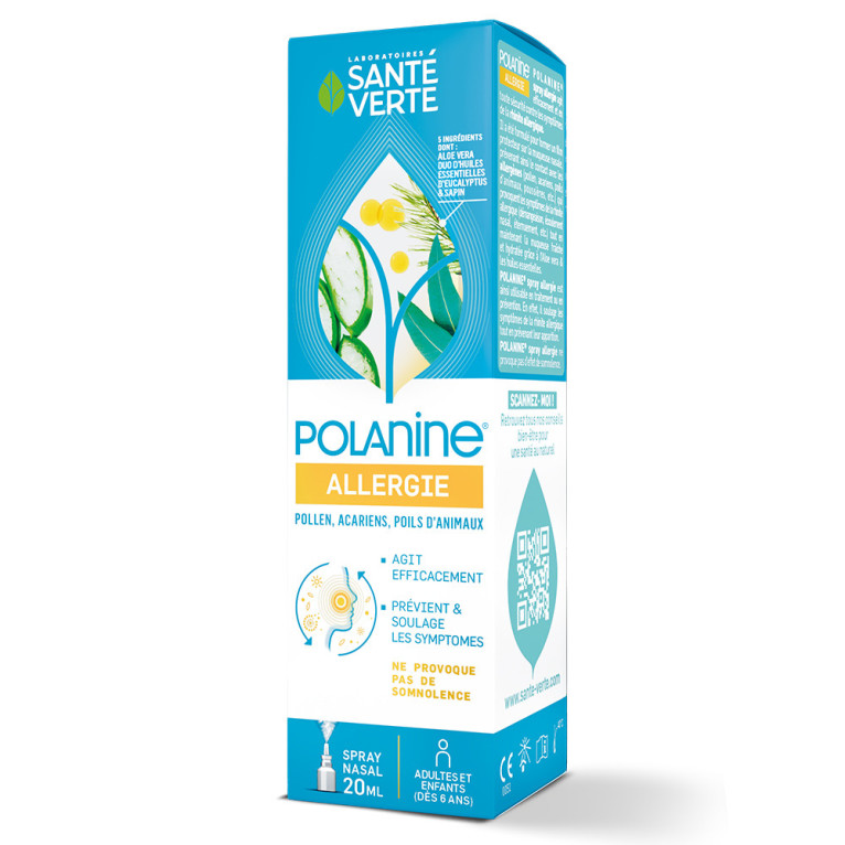 POLANINE Spray Nasal Allergie discount de SANTE VERTE, a qualité exclusivement distribuée en pharmacie dans votre parapharmacie en ligne à prix discount, dans une combinaison d’huiles essentielles et d’aloe vera destinée à nettoyer de façon douce et efficace les fosses nasales et lutter contre les agressions allergènes. A partir de 6 ans