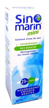 Solution nasale nez bouché SINOMARIN, un spray pour libérer les voies respiratoires nasales lors de nez bouché (rhinites, sinusites) chez toute la famille (nourrisson à adulte).