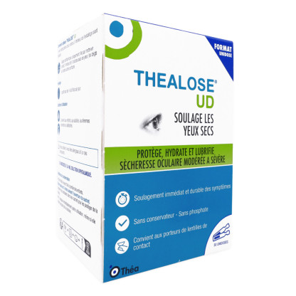 Mentions légales: Tenir hors de la vue et de la portée des enfants. Après utilisation, ne conduisez pas et n’utilisez pas de machines si votre vision est floue. Attendez quelques minutes, le temps que votre vue redevienne nette. Espacez d’au moins 10 minutes l’administration de deux produits oculaires différents. Ne diluez jamais THEALOSE UD et ne le mélangez jamais avec d’autres solutions.En cas de doute, demander l'avis d'un professionnel de santé.