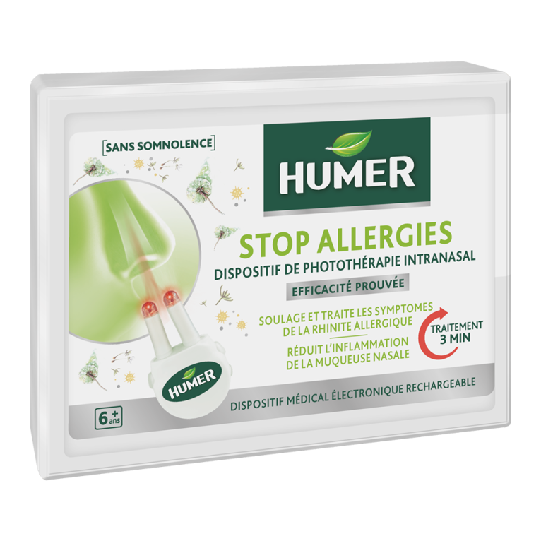 STOP ALLERGIES Dispositif de Photothérapie Intranasal discount de HUMER, un dispositif médical non médicamenteux et sans somnolence pour traiter et soulager les symptômes de la rhinite allergique grâce à la lumière, dans votre parapharmacie en ligne à prix discount.