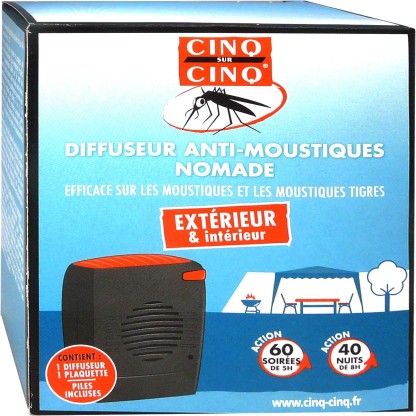 Le diffuseur anti-moustiques nomade de CINQ SUR CINQ dans votre parapharmacie en ligne à prix discount, le diffuseur 2 en 1 petit format, qui protège et éloigne les moustiques à l’extérieur et à l’intérieur.