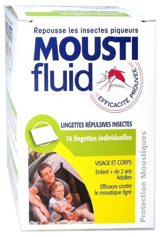 MOUSTIFLUID Lingettes répulsives des laboratoires GIFRER, la protection efficace pour éloigner les moustiques et insectes piqueurs sur la peau. Pour toute la famille, à partir de 2 ans. Visage et corps