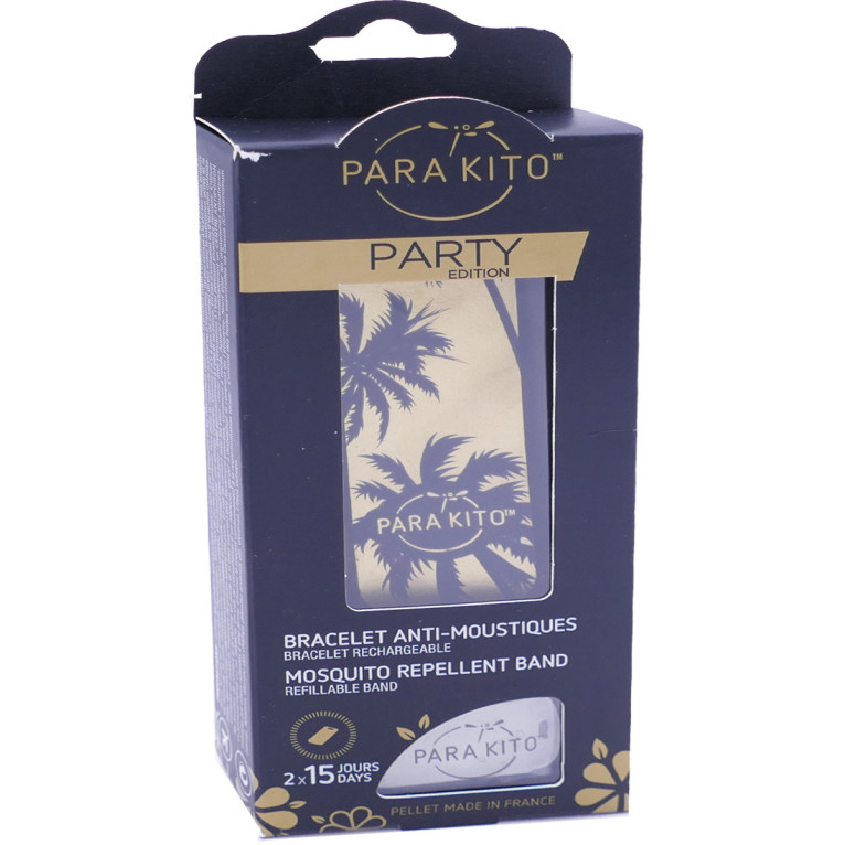 Ouvrir le sachet de la plaquette active et l'insérer sous le filet protecteur, se laver les mains après manipulation de la plaquette active. Le bracelet parakito se porte au poignet, à la cheville ou sur tout autre support mobile (ceinture, sac à dos, ...) ou fixe (table, montant de lit, ...) grâce à son attache réglable. Entre deux utilisations, le bracelet peut être rangé dans l'emballage fourni. En zone infestée, porter 2 bracelets y compris la nuit. Ne pas utiliser chez les enfants de moins de 36 mois.