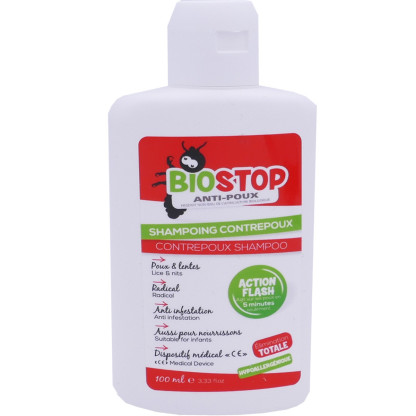 Le shampooing Contrepoux de BIOSTOP, le shampooing pour lutter contre la prolifération des poux et des lentes, et les tue tout en nettoyant les cheveux en seulement 5 minutes. Adapté à toute la famille : Nourrissons, enfants, adultes