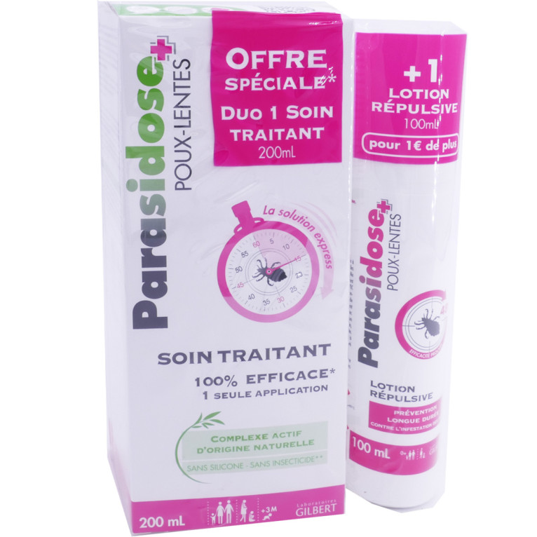 PARASIDOSE Poux-Lentes discount des laboratoires GILBERT, l’expertise au meilleur prix dans votre parapharmacie en ligne à prix discount, dans 2 soins spécialement conçus pour éliminer efficacement les poux et les lentes en 15 minutes chrono et lutter contre la ré infestation, dès 3 ans. Pour 1€ de plus Lotion répulsive