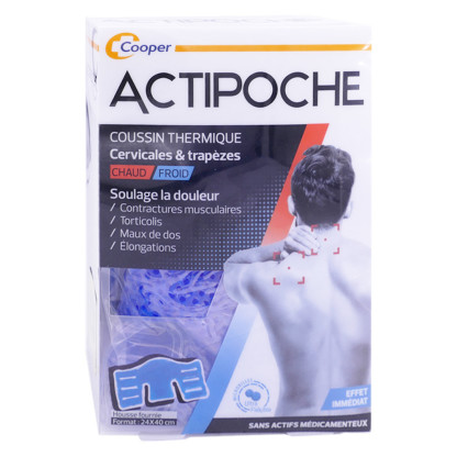 Actipoche Coussin Thermique discount de COOPER, la qualité et l’expertise dans votre parapharmacie en ligne à prix discount, pour un coussin thermique aux propriétés antalgiques qui agit par son action chaude ou froide des zones du corps tel que les cervicales et les trapèzes.