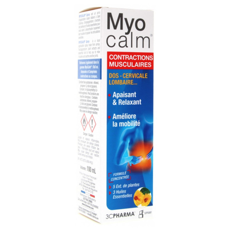 MYOCALM Spray Contractions musculaires discount des laboratoires Les 3 Chênes, le spray apaisant et relaxant qui soulage lors de contractions musculaires (dos, lombaire, cervicales,…) et améliore la mobilité, dans votre parapharmacie en ligne à prix discount.