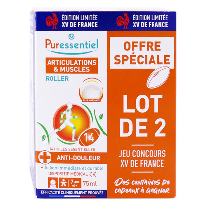 Le roller articulations & muscles PURESSENTIEL lot de 2X75ml Edition XV de France est en vente en ligne sur le site de votre parapharmacie à prix discount.