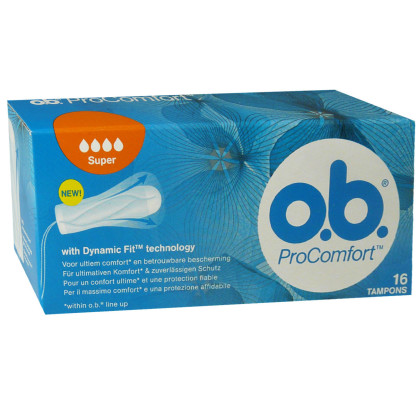 La marque o.b. ®, symbole de la liberté de la femme, propose une large gamme de tampons répondant à tous les besoins hygiéniques en matière de taille, d’intensité de flux, avec ou sans applicateur… o.b. ®tampon ProComfort Super est particulièrement adapté aux flux abondants. Grâce à son voile protecteur très doux technologie Silk Touch, il s’insère et se retire facilement, et limite les irritations. Ses rainures incurvées assurent une absorption et une protection optimale en limitant le risque de fuite. Sa nouvelle technologie Dynamic Fit et son expansion en 3D permet de s’adapter naturellement à la forme du corps pour un port très confortable.