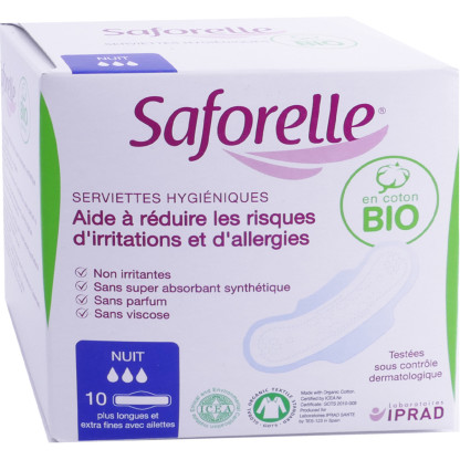 SAFORELLE 10 SERVIETTES NUIT BIO COTON