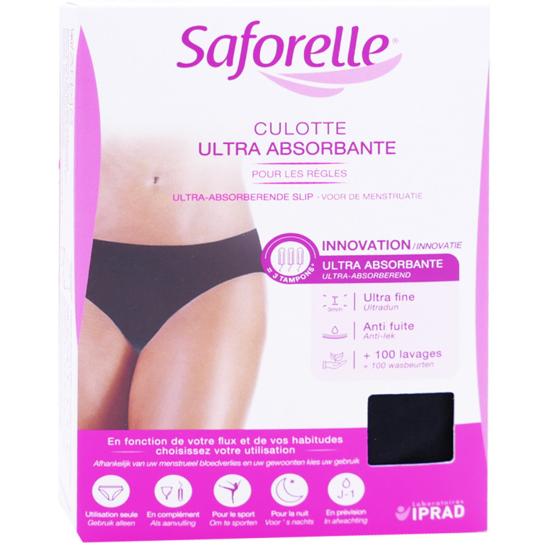 La Culotte Ultra-absorbante de SAFORELLE discount, une culotte lavable et réutilisable dans votre parapharmacie en ligne à prix discount pour protéger lors des règles menstruelles en toute discrétion. Taille 44