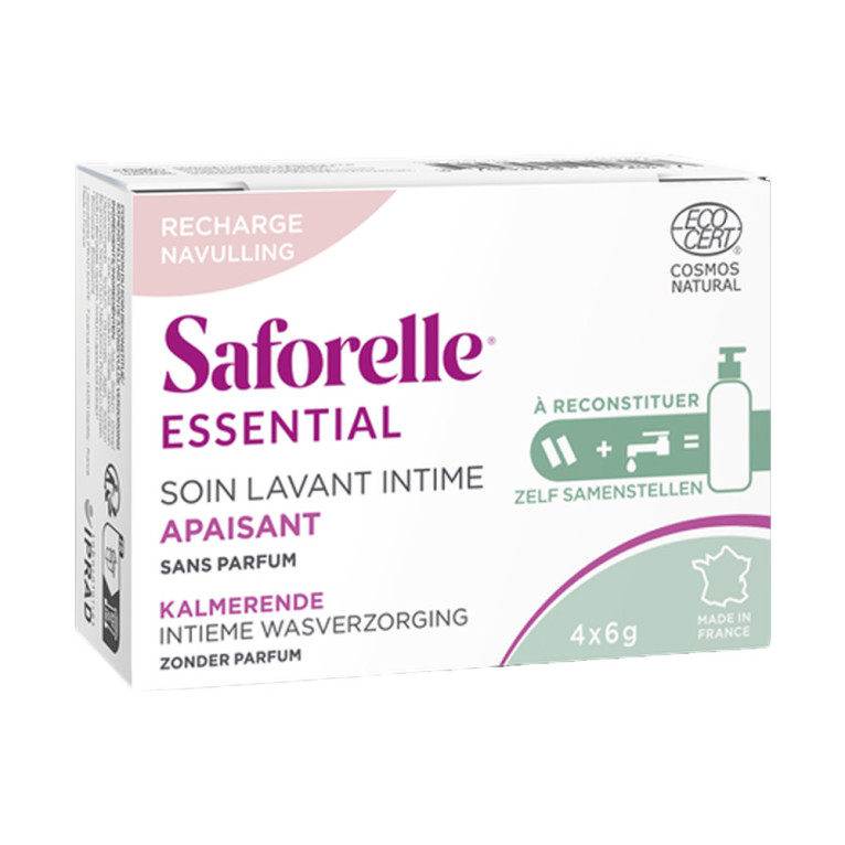 SAFORELLE ESSENTIAL RECHARGE SOIN LAVANT INTIME APAISANT 4X6 grammes en vente en ligne sur le site de votre parapharmacie à prix discount.