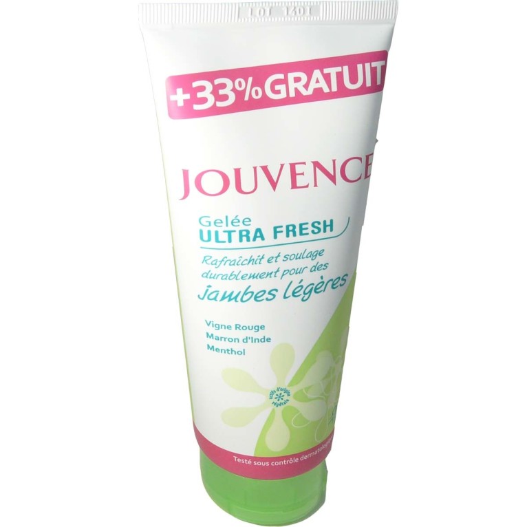 La gamme JOUVENCE du laboratoire OMEGA PHARMA est composée de produits pour soulager les pieds et jambes fatiguées et retrouver légèreté et confort. Gelée Ultra-Fresh JOUVENCE améliore la microcirculation sanguine des jambes, apaise et laisse une grande sensation de fraicheur grâce à l’extrait de vigne rouge, au Marron d’Inde ainsi qu’au menthol qui sont des ingrédients d’origine naturels. Les jambes sont plus légères, fraîches et plus confortables. Sa texture gel ne laisse pas de film gras et ne colle pas. Très pratique, elle peut être appliquée sur les collants. Testée sous contrôle dermatologique
