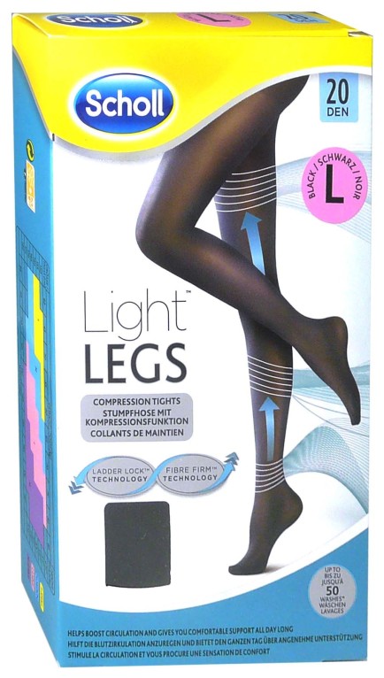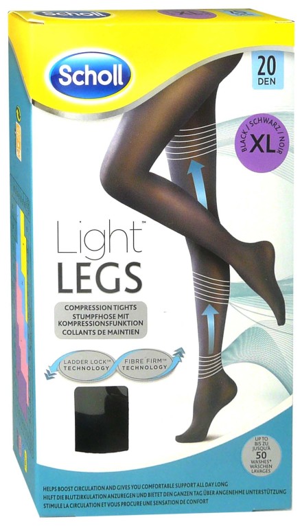 Le laboratoire SCHOLL conçoit des produits experts pour apporter confort et bien être aux pieds au quotidien. Le collant Light Legs noir 60 permet de retrouver une sensation de jambes légères tout au long de la journée. Bénéficiant de la nouvelle technologie Fibre Firm qui exerce une compression moyenne (20 millimètres de Mercure) et progressive en partant de la cheville jusqu’en haut de la jambe, il stimule la circulation sanguine pour des jambes confortables et légères toute la journée.