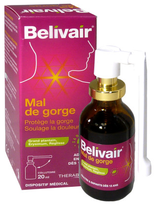 Mal de gorge BELVAIR à prix discount, le dispositif médical sous forme de collutoire dans votre parapharmacie en ligne discount, pour soulager les maux de gorge de toute la famille lors d’enrouements, douleur, toux, sensations de brûlures et de sècheresse, irritations des voies respiratoires supérieures. A partir de 12 ans