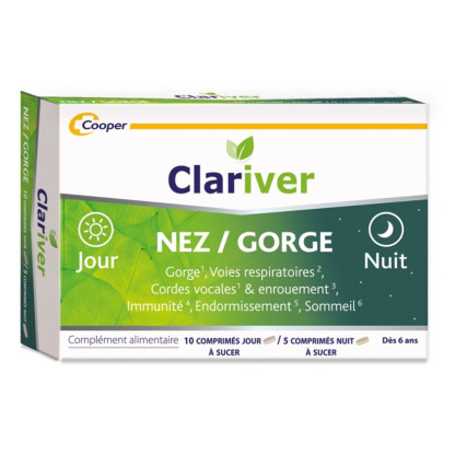 CLARIVERS NEZ/GORGE JOUR & NUIT 15 COMPRIMES est un complément alimentaire en vente en ligne, sur le site de votre parapharmacie à prix discount.