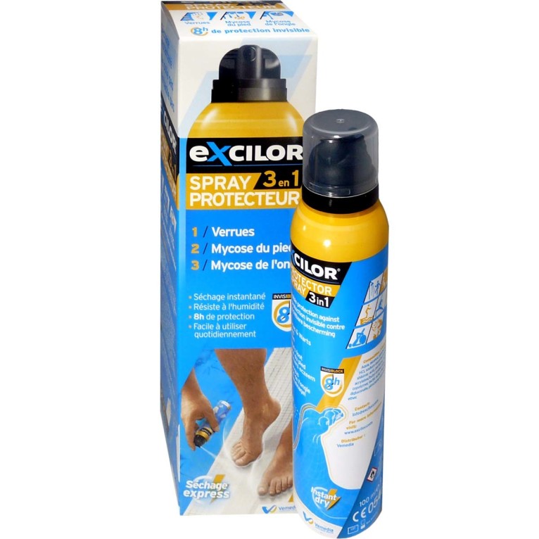 Spray protecteur 3 en 1 d’EXCILOR à prix discount dans votre parapharmacie en ligne discount, la solution en spray pour assainir, protéger des mycoses et verrues du pied et de l’ongle et prévenir leur réapparition. A partir de 2 ans