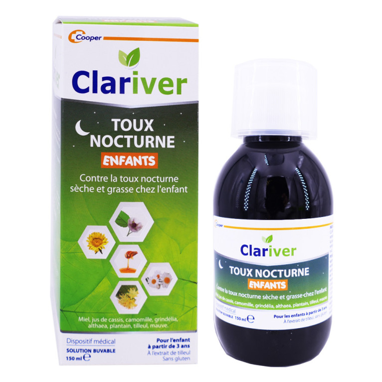 Clariver Toux Nocturne Enfants 150ml, en vente en ligne sur le site de votre parapharmacie à prix discount, est le dispositif médical idéal pour calmer les toux nocturnes sèches et grasses de vos enfants. A partir de 3 ans