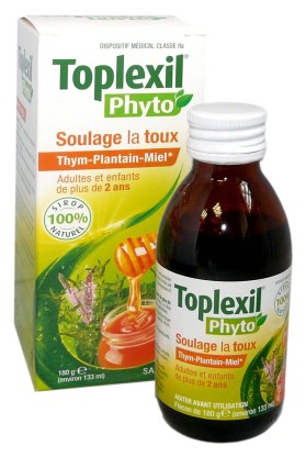 Toplexil Phyto des laboratoires SANOFI AVENTIS, le dispositif médical sous forme de sirop à base d’extraits de plantes naturelles qui s’utilise pour soulager les toux sèches ou grasses. (A partir de 2 ans)
