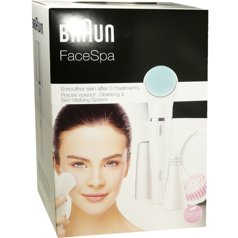 BRAUN conçoit des appareils pour le bien-être et le confort de chacun comme les rasoirs, les épilateurs, et thermomètres. Facial SPA Epilateur Visage de BRAUN est un appareil composé de 2 éléments. Il possède une brosse nettoyante pour nettoyer tout en douceur et en profondeur le visage, et un embout pour l’épilation du visage (menton, lèvre supérieur, front, sourcil). L’embout épilateur possède une tête étroite composée de 10 micro-ouvertures pour éliminer tout en douceur et avec précision les poils disgracieux dès la racine et les plus fins (0,02mm) du visage. La peau restera nette pendant 4 semaines. La brosse nettoyante qui bénéficie de la technologie sonique et Wet&Dry pour être 100% étanche même sous la douche ou dans le bain, va nettoyer le visage sans effort pour redonner éclat et pureté. Avec ses centaines de micro-oscillations, elle va éliminer toutes les impuretés et le maquillage et exfolier tout en douceur l’épiderme pour affiner le grain de peau, stimuler la microcirculation sanguine, et lui redonner beauté et netteté en étant 6 fois plus efficace qu’un nettoyage à la main. Après le nettoyage les crèmes et lotions pénètreront mieux la peau pour des résultats ultra-efficaces. Grâce à ce Facial SPA Epilateur Visage 3 en 1, le visage sera revitalisé et net pour une peau éclatante. Pratique son petit format et sa pochette permet de transporter Facial SPA Epilateur Visage partout avec soi.