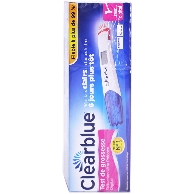 Les produits CLEARBLUE sont spécialisés dans les tests de grossesses, d’ovulation et de fertilité, et des moniteurs de contraception. Clairs et simples d’utilisation, leurs résultats sont efficaces. Ce test de grossesse digital urinaire Détection Ultra Précoce CLEARBLUE fiable à plus de 99%, permet de détecter une grossesse à partir de 6 jours avant la date de retard des règles. Il permet par sa concentration en hormone HCG (chorioniques gonadotropes) qui est une hormone présente dans l’urine, d’être sûre d’être enceinte. Lorsque le taux de HCG a une forte augmentation, la grossesse est détectée. Son écran digital permet une lecture très claire et facile du résultat en seulement 3 minutes grâce à son résultat numérique « enceinte », « pas enceinte ». Pratique d’utilisation, l’embout du test clignote lorsque la quantité d’urine recueillie est suffisante.