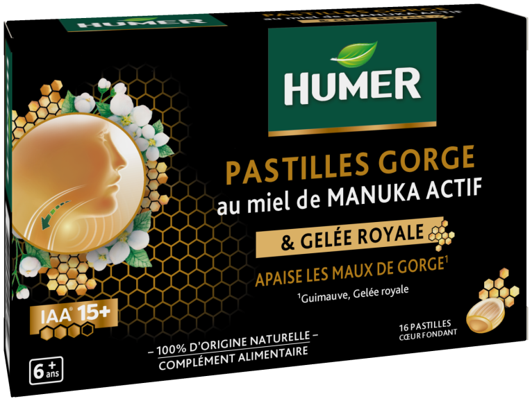 HUMER PASTILLES GORGE AU MIEL DE MANUKA ACTIF & GELEE ROYALE 16 PASTILLES en vente en ligne, sur le site de votre parapharmacie à prix discount.