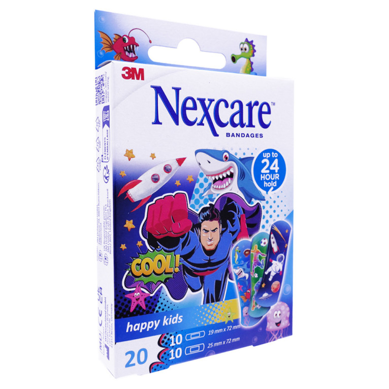 NEXCARE Pansements Happy Kids de 3M à prix discount, la solution santé dans votre parapharmacie en ligne à prix discount, dans un assortiment de pansements de différentes tailles, qui soignent les petits bobos des petits avec de jolis motifs différents !