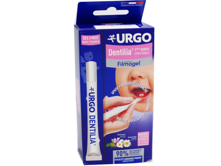 DENTILIA 1ères Dents à prix discount des laboratoires URGO, la solution sous forme de stylo massant dans votre parapharmacie en ligne discount, pour soulager les gencives sensibles des tout-petits lors de poussées dentaires. A partir de 3 mois