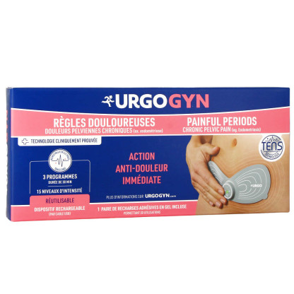 URGO PATCH ELECTROTHERAPIE REGLES DOULOUREUSES RECHARGEABLE - URGOGYN est en vente en ligne sur le site de votre parapharmacie à prix discount, conçu pour soulager les douleurs lombaires et du bas ventre liées aux règles et aux douleurs pelviennes chroniques.
