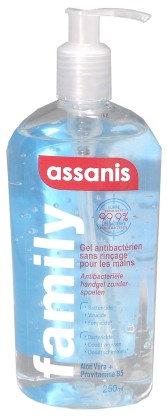 Gel antibactérien ASSANIS Family, le gel qui nettoie et désinfecte les mains. Les produits de la gamme ASSANIS, des gels hydro-alcooliques pour désinfecter et nettoyer mains et surface rapidement.