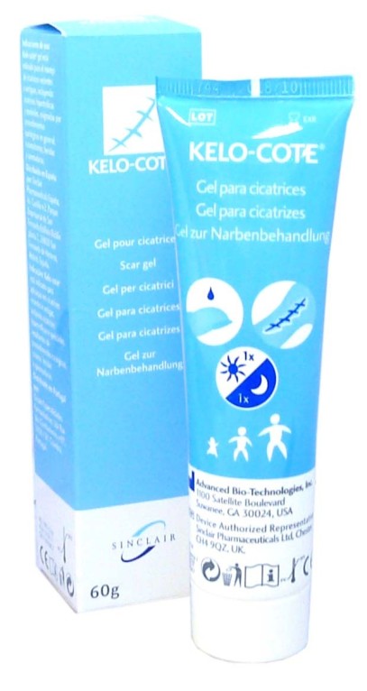 KELO-COTE de SINCLAIR, le gel silicone breveté pour prévenir et traiter les cicatrices hypertrophiques et chéloïdes suite à des interventions chirurgicales, des traumatismes, des plaies ou des brûlures.