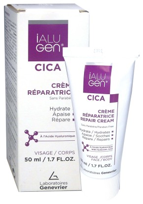 IALUGEN CICA Crème réparatrice des Laboratoire Genevrier, l’expertise médicale au service de la dermo-cosmétique dans un soin conçu pour réparer, hydrater et soulager les petites lésions cutanées : écorchures, petites coupures, gerçures, interventions dermatologiques… visage et corps, dès 3 ans.